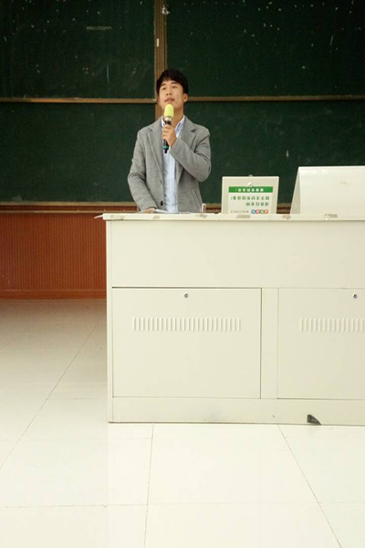 (曹刚果老师在进行考研知识报告)