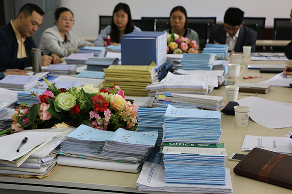 接着,教科研秘书钟家伟作中期检查详细报告。随后,领导们在刘树德的陪同下查阅相关材料。阅毕,领导们对我部的一些创新性改革和团队精神给予高度的评价,同时分别从公共英语和思政课程改革、教学五大件的规范、教研室会议记录、作业的批发、个性化培养等方面给出宝贵的意见和建议,我部都一一记下,下午召开全员大会,把领导们留给我们的宝贵“食粮”传达给每位教职员工,一起分享、总结消化,进一步完善、细化工作。