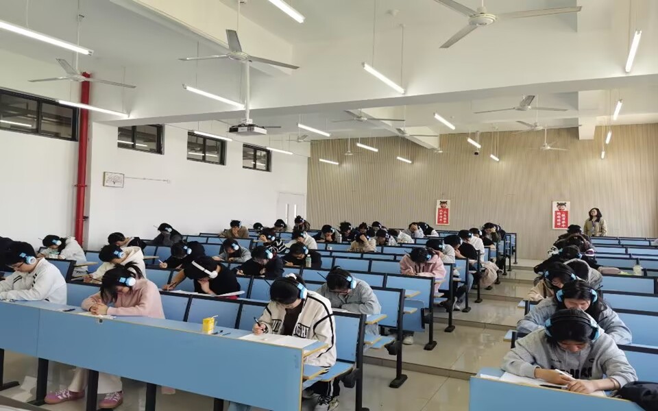2025年4月13日上午9点,全国大学生英语竞赛(NECCS)初赛在我校A5教学楼成功举行。本次赛事由紫云英创新创业学院主办,通识教育与外国语学院承办,教务处、各学院协办,旨在激发学生英语学习兴趣,提升语言综合应用能力,营造良好学风氛围。竞赛当天,院领导高度重视,院长罗从文、副院长胡叶婷、黄飞、党总支书记孙立、副书记邓辰带队巡考,实地查看考场秩序、考生作答及监考情况,确保考试的公平、公正与顺利进行。 (图为竞赛考试现场)赛场内,考生们全神贯注投入考试,精神饱满,认真作答,展现出良好的考风和学风。监考教师严格履职,后勤保障、设备调试等各环节均由各学院通力协作完成,彰显出高效的跨部门联动能力。本次竞赛覆盖全校7个二级学院,吸引883名学子报名,参赛规模庞大。竞赛内容涵盖了英语听力、阅读、写作等多个方面,全面考察了学生的英语综合运用能力。通过本次竞赛,学生们不仅检验了自己英语学习的成果,也发现了自身的不足之处,明确了今后学习的方向。(图为学院领