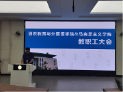击鼓催征再出发,奋楫扬帆新征程。6月30日上午,通识教育与外国语学院及马克思主义学院在博学楼W301召开了全体教职工大会,全面总结本学期各项工作任务,落实合格评估事宜,对暑期轮休期间的工作再安排、再部署。副校长孙辉、人力资源处副处长钟家伟应邀出席,会议由执行院长刘德胜主持。会议伊始,钟家伟代表学校宣布了学院第四届领导班子任免的决定。 (图为钟家伟宣布任免决定)随后孙辉对学院新一届班子工作和未来整体工作作了重要指示并提出几点期望:他希望学院在新一届管理干部队伍的带领下,每一位教职工都应做到自立、自信、自由、自强,力争将学院打造成为有抱负、有行动、有感情的3A学院(Ambition、Action、Affection),打造成为具有强动能、高速度、低摩擦,不内耗、不折腾,统一目标、统一思想干教育事业的高效学院;打造成干事情讲逻辑、可收敛、明曲直的务实学院;打造成一个根子正、身体棒、素质高的阳光学院。 (图为孙辉作工作指示)接着,刘德胜对第三届班子成员的辛勤付出表示感谢并代表第四届班子成员作表态